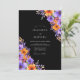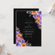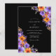 A striking black backdrop sets a dramatic stage for vibrant purple and orange watercolor florals. This design features delicate anemones and golden petals paired with lush greenery for a moody, sophisticated aesthetic. Perfect for an autumnal or evening-themed event, the artwork emphasizes bold contrast and rich botanical textures.
