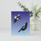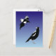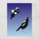 Hand drawn black and white Australian magpies on a gradient blue background.