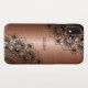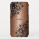 Cool elegant black floral mandala lace over an image of metallic copper brushed aluminium look.