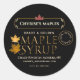 This maple syrup label can be customised with your business name, address and maple syrup volume in ounces and milliliters. There is a handy list of common container sizes with their conversions in the form field where you fill in your information. Black background with gold text and border. For a special touch, the word “maple syrup” has a gold gradient. Two sugar maple leaves and an editable circular logo with "Spring Season 202X" add a special touch.