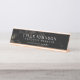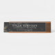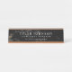 A minimal desk nameplate featuring a black marble styled backdrop. On the front is your name and information in a unique modern font.