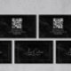 Black Marble ElegantScript QR CODE Black and White Business Card