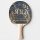 Black Marble & Gold Stone Leaf Wedding Monogram Ping Pong Paddle
