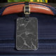 I was happy with the acrylic tag but it came with a thin leather strap to attach the tag to luggage (like a cat collar). I replaced the strap with a metal ring off of a key ring as the leather strap would come undone or break easily as luggage is sometimes handled without much care by airlines. Printing is great. Colours and positioning of the design I put on the tag were perfect. Very pleased.