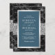 Black Marble Silver Dusty Blue QR Code Wedding Invitation