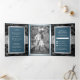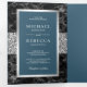 Black Marble Silver Glitter Dusty Blue Wedding Tri-Fold Invitation