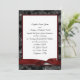Formal invitation in black, grey and maroon with subtle floral border and faux maroon satin ribbon and bow. (Prints flat and does not contain any raised embellishments). Can be customised for any event when a formal and elegant invitation is needed. Choice of paper finishes and colours. Invitations come complete with envelopes. Matching pieces available in store.