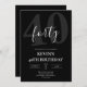 Bold black masculine milestone birthday invitation featuring a large “40” and elegant script “forty” typography. Modern minimalist layout for a 40th birthday celebration with clean, upscale style for men’s adult party invites.