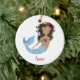 Black Mermaid Cute Little Girl Personalised Name Ceramic Ornament. Personalise with your custom information on both front and back.
