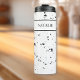 Small black and micro light grey glass chips Terrazzo pattern on a white background decorate this 12oz thermal tumbler. Easily change name with the Template provided; ample space to add text. Stainless body, plastic lid. Vacuum-sealed double walled construction retains temperature, hot or cold. See "About This Product" at side for more information and care.