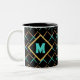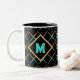 black mid century modern elegant script typography Two-Tone Coffee Mug.funny symbol initial pillow with monogrammed feature.