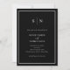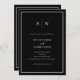 These elegant, modern all in one wedding invitations feature a simple white minimalist text design, with a classic frame at the border on a dark black background. Add your initials or monogram to make them completely your own. The back of the invitations feature room for your wedding details (reception info, hotel accommodations, etc.) and rsvp (including a scannable QR code so guests can respond online via your wedding website.)