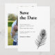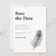 Minimal design Wedding Save The Date Invitation features an elegant peacock feather line art illustration in a classic black and white colour theme. Modern and clean typographical design, this Save the Date invitation is ready for you to customise with the details of your special day and add your own photo. Part of an ever-growing range of stationery, please browse the Black Peacock Feather Wedding Suite for matching items.
