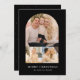 Modern holiday photo card featuring 3 of your photos arranged in an arch-shaped grid layout. Personalize the front of the multi-photo holiday card with your custom greeting and family name displayed in white lettering with a black background. The card reverses to a subtle black and white dot pattern.