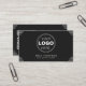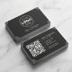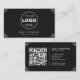 This sleek black business card design features a refined minimalist aesthetic with subtle Art Deco influences, creating a modern and professional visual identity. The front showcases a centered circular logo placeholder framed by elegant geometric accents, while the back highlights a bold, high-contrast QR code for seamless digital connection. Clean typography and a structured layout ensure clarity, with dedicated space for contact details including name, phone, email, and address. Ideal for real estate agents, entrepreneurs, and professionals seeking a polished, tech-forward branding solution that balances style and functionality.