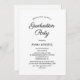 Black Minimalist Script Graduation Invitation. Great for high school, college, or university celebrations.