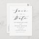 Announce your wedding date to family and friends with this minimalist save the date announcement postcard. It features a black dainty script and classic typography. Personalise by adding your details. This minimalist save the date postcard is perfect for any wedding theme or season.