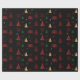Black Modern Christmas Tree and Snow flakes Gift Wrapping Paper