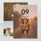 Double sided save the date card with a modern clean typography design focused on the wedding date atop a photo of the happy couple. Add three more photos to the back in a clean collage. Clean save the date template card personalised with photos.