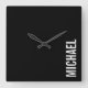 Black Modern Minimalist Personalised Name Square Wall Clock