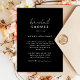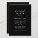 Welcome to our Black Modern Script Bridal Shower Invitation design, where modern minimalism meets the artistry of calligraphy. This curated aesthetic brings an air of sophistication to your special day- with a twist of boho, casual charm. The combination of simple typography with a stylish script font adds a unique personality to your wedding. This classic design offers a timeless, polished look that's perfect for spring, summer, fall, or winter weddings. A simple understated palette of black backdrops and white text creates the perfect neutral backdrop for your celebration. Make your wedding truly elegant with our lovely Modern Script collection. As with all of our designs, if you have any questions or special requests, please just ask.