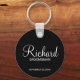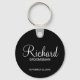 featuring personalised groomsman's name in white modern script font style with title and wedding date in modern sans serif font style on black background.