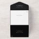 Welcome to our Black Modern Script Wedding All In One Invitation design, where modern minimalism meets the artistry of calligraphy. This curated aesthetic brings an air of sophistication to your special day- with a twist of boho, casual charm. The combination of simple typography with a stylish script font adds a unique personality to your wedding. This classic design offers a timeless, polished look that's perfect for spring, summer, fall, or winter weddings. A simple understated palette of black backdrops and white text creates the perfect neutral backdrop for your celebration. Make your wedding truly elegant with our lovely Modern Script collection. As with all of our designs, if you have any questions or special requests, please just ask.