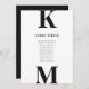 Black Modern Seating Chart Card Bold Monogram