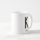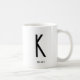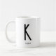 Minimalist but stylish, white personalised mug with black initial letter monogram and name across the letter. A perfect gift or personal accessory that is easy to personalise (just click on the button 'PERSONALIZE').
