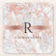 Black Monogram & Name, White & Rose Gold Marble Square Paper Coaster