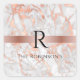 Black Monogram & Name, White & Rose Gold Marble Square Sticker