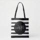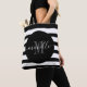 Black Monogram Script Calligraphy Modern Stripe Tote Bag
