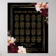 Black Moody Burgundy Blush Floral Wedding Seating Poster