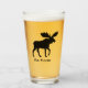 Enjoy a pint of your favourite cold beverage out of this original 16 oz drinking glass. Black moose silhouette with custom text for your name or slogan. Makes a fun personalised gift. Visit Jenn's Doodle World for more custom drinkware and wildlife designs.