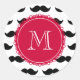 Black Moustache Pattern, Red Monogram Classic Round Sticker