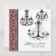 This is a sleek, elegant and contemporary, invitation. It features stylised, detailed pen and ink work ornamentation that draws its influence from vintage etchings. The three chandeliers on the front are both elegant and whimsical adding a touch of playfulness to the invitation. On the left hand side of the front, you may select any colour for the background, shown here in pink as is the border on the reverse side. To select your own colour, simply choose "customise" and then edit, select drop down menu/background/select your colour. YOU MIGHT ALSO ENJOY: