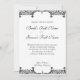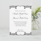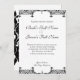 This is a black and white, traditional, elegant and yet contemporary wedding invitation set. It features modern, stylised, detailed pen and ink artwork ornamentation that draws its influence from vintage antique, French printer's ornament, decorative swirled etching that frames the invite text. On the front, there is a hand painted Fleur de Lis leaf swirl Damask element.