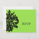 Black n White Fleur de Lis Damask Wedding RSVP Card