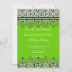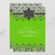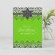 NOTE: This is a flat printed formal event invitation, there are no layers or dimensional elements. All design pieces are graphically designed. COLOR SELECTION: This design features bright lime green, black and white with touches of silver metallic looking graphic design. Perfect for the Bat Mitzvah Celebration Invitation, Announcement, Party or formal party event. DESIGN: This is a truly elegant and sophisticated Party Invitation Collection worthy of a formal, black tie event! Shown here in Black & White, the invitation has an elegant, three dimensional looking "raised" black lace appearance created from beautiful damask pattern art. There is a beautiful Star of David, created by Audrey Jeanne and embellished with silver look filigree. There is also a very soft swirl pattern in the main colour text field background on both sides. The beautiful hand calligraphy font text on the front reads "Bat Mitzvah" and your daughter's name and party information is easy to customise using the template fields.