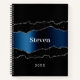 Black, navy blue and faux silver, agate, geode print as background. Personalise and add your name and a year.