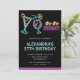 Black Neon Glow Cocktail Martini 57th birthday Invitation