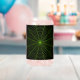 Black neon green spider web Halloween pattern Can Glass. Drinkware with Spooky Halloween cobweb gothic design and custom black background.