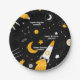 Black Night Sky Outer Space Rocket Birthday Paper Plate