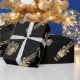 Christmas Wrapping Paper in Classic nutcracker soldier paired with gift boxes with bows, Sepia and Black