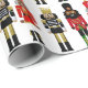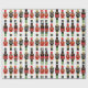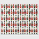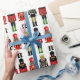 This festive Christmas holiday wrapping paper features three black nutcrackers in their soldier stance. Its red, green, gold, and black colors are perfect for the holiday season to wrap presents and gifts. It sets the tone for the perfect holiday decor.