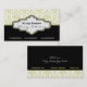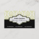 Black olive green white damask interiors business card