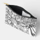 This cosmetics bag features an oversized line art drawing of chrysanthemums in black over a white background on both sides and with a personalized name on one side. Original art from Dogwood & Thistle.