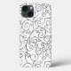 Protect your iPhone 8/7 with a case featuring hand-painted black curves which swirl, meet, and diverge in this all-over repeat design on a white background. The curvy lines end with scroll designs. The decorative image is both free flowing and delicate.