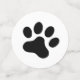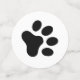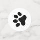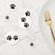 Confetti featuring printed black pet paw prints on a white background. Change paw print and background colour in the design tool.