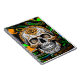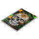 Black, lime green, orange sugar skull with fluid art background abstract art.